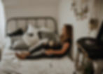 Photo by Kinga Cichewicz on Unsplash Woman sitting in bed against a wall with coffee in hand